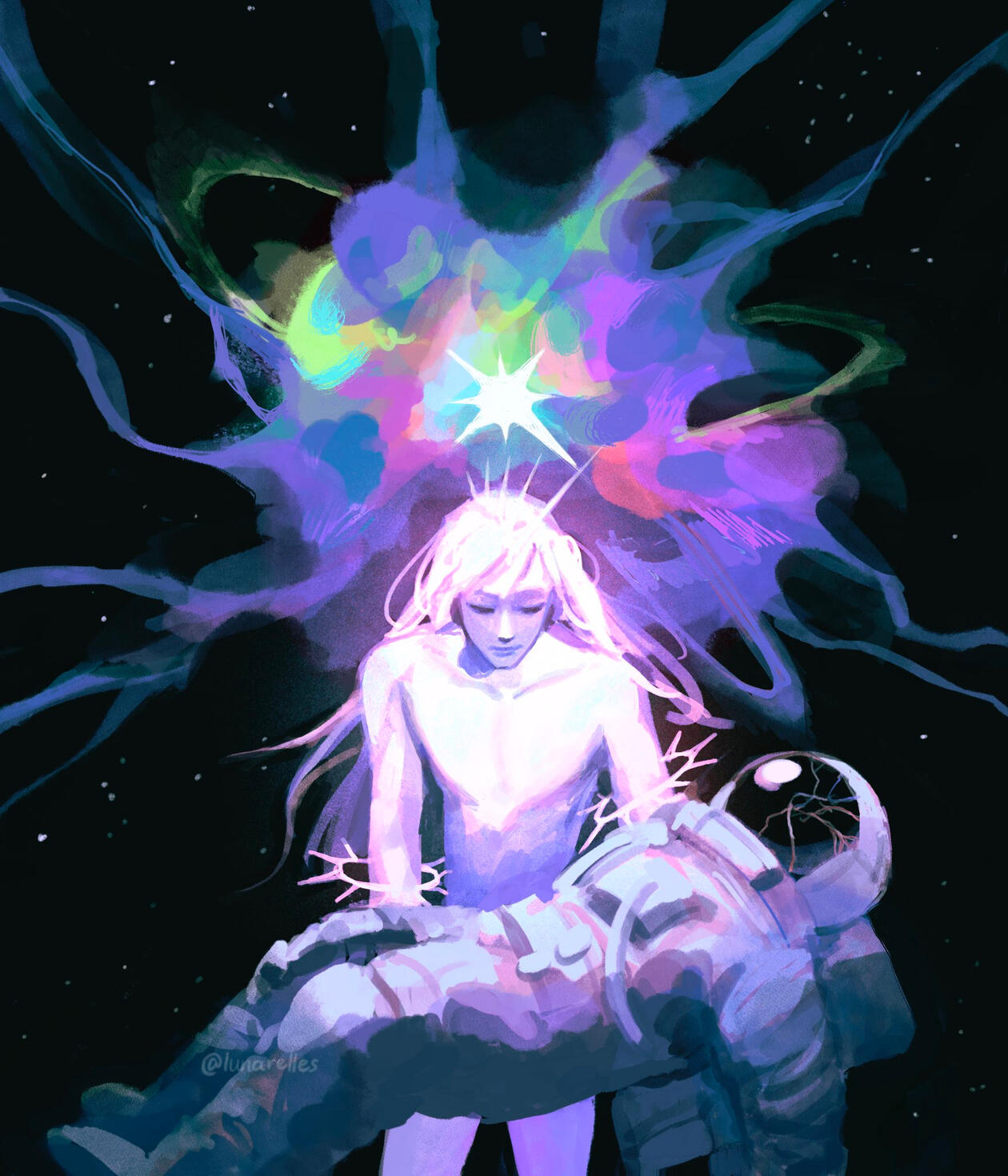 When Andromedes was floating aimlessly in space, he drifted near a star, also dying. In a collision of two lives that could not be more different, their memories and desires were briefly shared— and the star, having lived for billions of years— no longer wanted to die.It witnessed the astronaut’s cries as a baby, his childhood glee and bruises, his frustrations and misery as he grew older, and the overwhelming realization and acceptance of death arrived early. The star, having never understood something so frail, so human, wanted more.And Andromedes was able to see more than any of his own kind would ever witness— eons passing in a heartbeat, the constant fire that burned within until it would collapse on itself. But it was the star’s quiet loneliness that rippled most ferociously through the dead of space.
