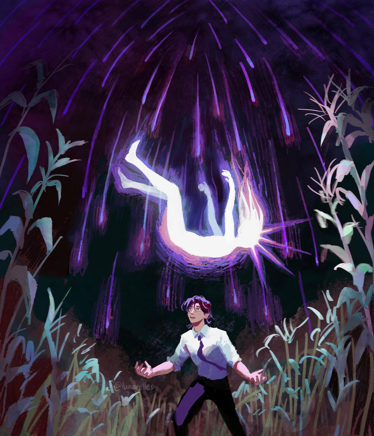 On the anniversary of the anomaly’s first sighting in the city, Galileo has a strange dream of a glowing figure falling from the sky during a meteor shower. He awakens before he catches the mysterious entity.